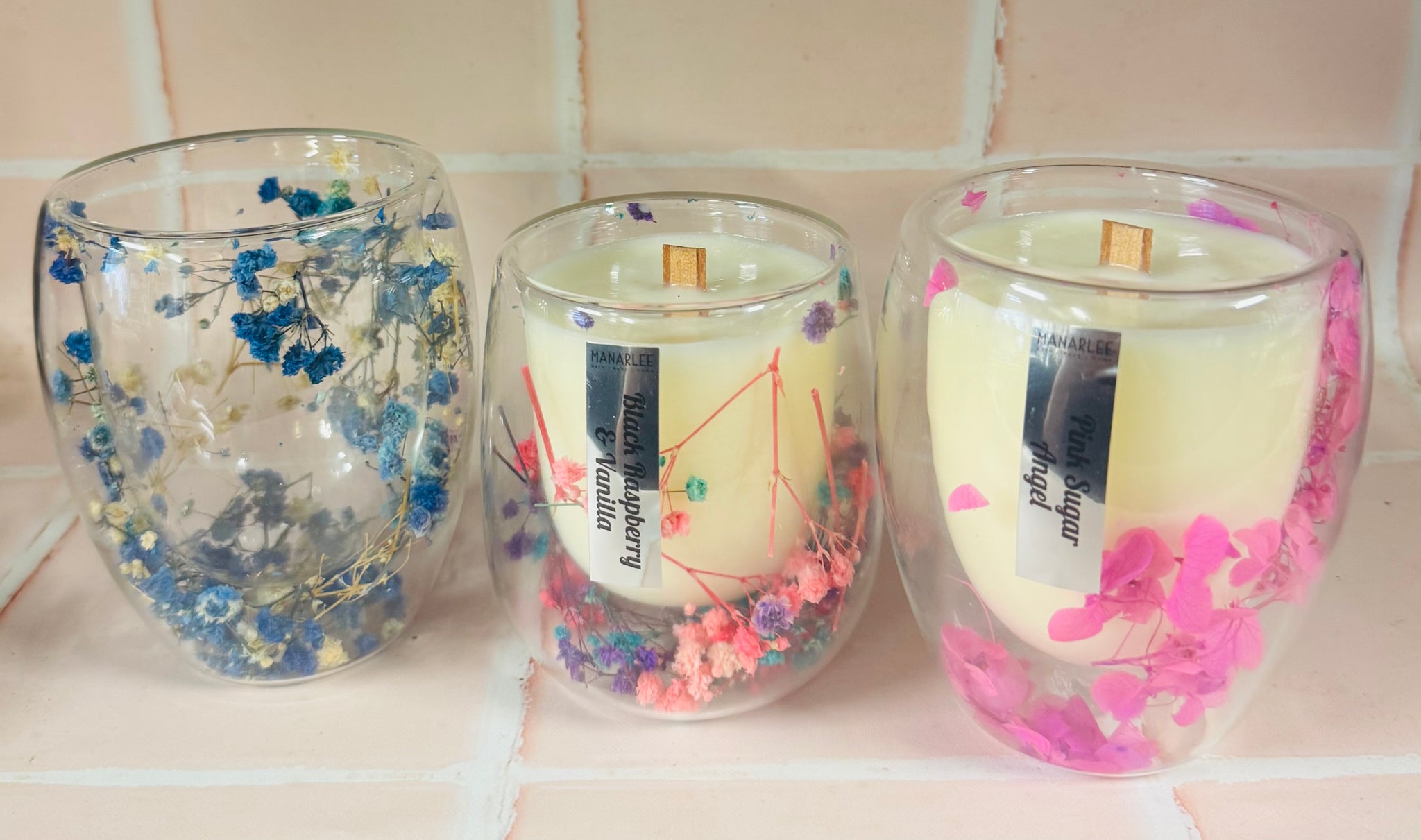 These absolutely gorgeous double walled candles are filled with beautiful dried flowers! They’re super unique and with each vessel having the botanicals placed individually inside, no two are the same.